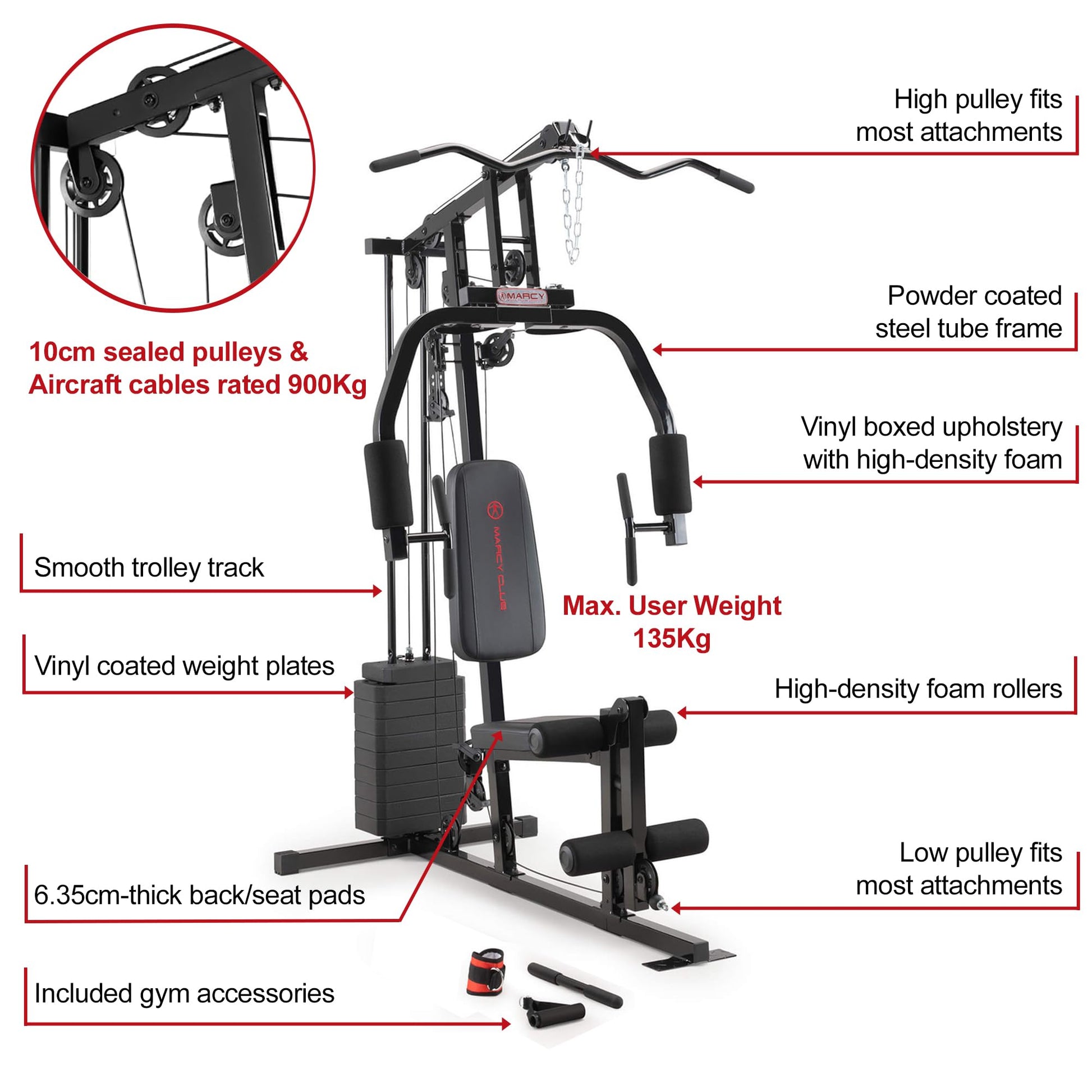 - MULTIFUNCTIONAL UPPER PULLEY. Offers exercises for biceps, triceps, shoulders and back. Adjustable height and resistance to customize your workout. Allows pull and push movements with control and safety. Turn the station into a versatile all-round strength equipment.