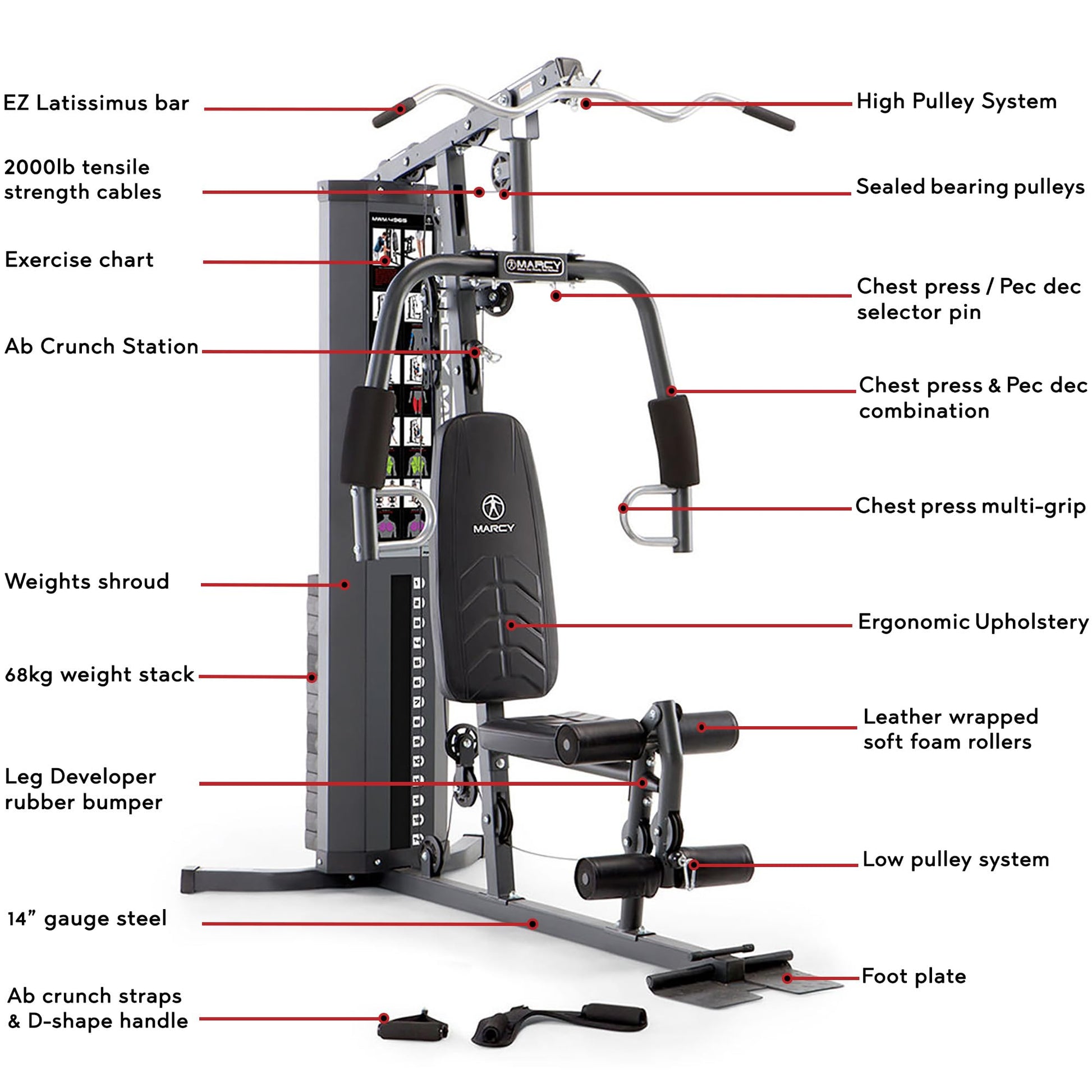 Marcy MWM-4965 All-in-One Home Multi Gym – 68kg Weight Stack with Pulley, Arm & Leg Developer for Weightlifting and Bodybuilding, 300 lbs Capacity